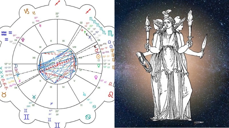 Oui mais… Pendant une éclipse solaire, Séléné est mangée par l'ombre de Gaïa, la Terre. Elle laisse alors la place à Hécate, une autre grande figure de l'énergie féminine porteuse de l’énergie divine céleste, une alliée de la matrice du Ciel (écoutez ou réécoutez l’échange d’Arouna avec Philippe Guillemant : Qui est la mère de notre GPS intérieur ? ) - Hécate est toujours célébrée lors d’une Nouvelle Lune, mais pendant une éclipse, le Ciel chavire et c'est la polarité noire de la Lune, Lilith, la déesse de la nuit noire, qui prend le pouvoir lunaire. Dans le ciel de cette éclipse, se dessine de fait, un cerf-volant constitué par la Lune, le Soleil, Jupiter ET Lilith.
